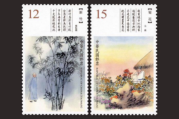 推廣我國古典文學,中華郵政公司繼2018年發行「古典詩詞」系列郵票後,續以傳統文化中被稱為「四君子」的梅、蘭、竹、菊為題材,選取〈梅花〉王安石、〈蘭溪〉杜牧、〈新竹〉鄭板橋及〈菊花〉元稹4首五言及七言絕句詩,訂於2020年10月14日發行「古典詩詞郵票(民國109年版)」1套4枚,郵票面值分別為8元2枚、12元及15元。