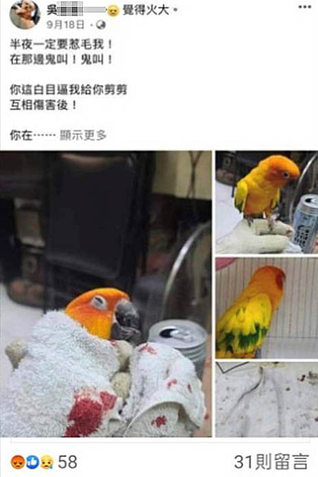 飼主臉書鸚鵡虐待案 動保處追查還原真相