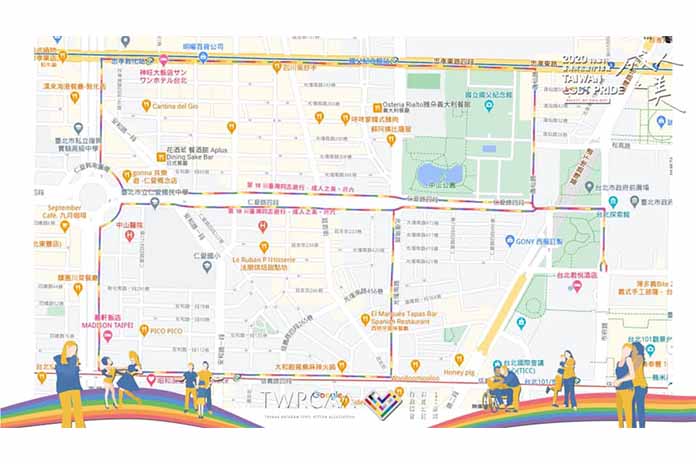 第18屆臺灣同志遊行今(31)日下午2點於臺北市政府前市民廣場登場,今年遊行隊伍由臺北市政府開出發,走到仁愛路時分為南、北兩條線,最後回到臺北市政府廣場,藉由不同路線吸引沿途捷運站與商圈人潮,邀請更多街角巷弄一起力挺彩虹精神。