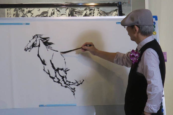 *王海峰大師亦親自揮毫與南園箏樂團的古箏演奏融和,並伴隨茶席品茗,使客家文化會館濃濃瀰漫著整個書畫藝術氣息,而現場亦邀請男高音黃南海演唱表演來炒熱現場的氣氛,呈現不同的感受。