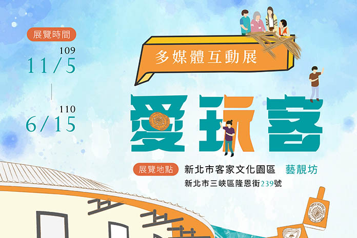 愛玩客-多媒體互動展以時下新興科技做為載體,將客家文化的質樸醇厚視覺化,並搭配操作互動,營造親子同遊共學的一方天地。展覽期間也將規劃主題相關DIY互動活動,詳情請密切留意新北市客家局臉書粉絲專頁相關活動資訊!