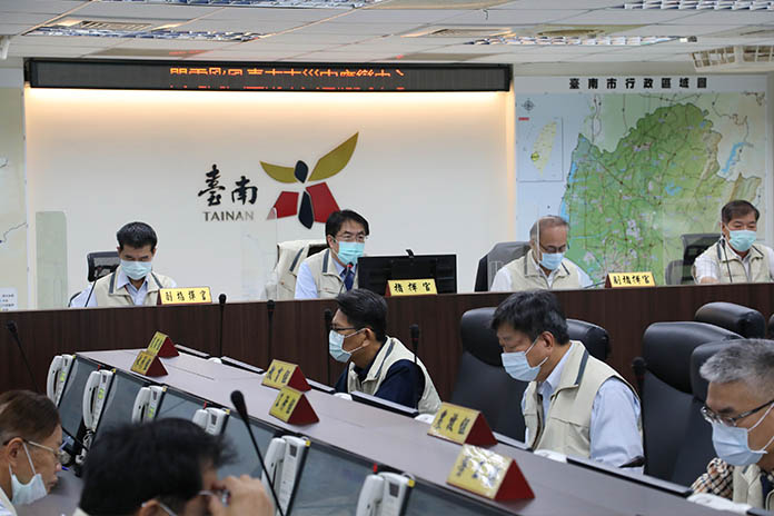央氣象局針對輕度颱風閃電在11月5日20時發布陸上颱風警報,而颱風的暴風圈預計在11月6日12時進入台灣陸地,台南市府於11月6日6時對閃電颱風的災害應變由三級提升一級開設,台南市長黃偉哲也於11月6日上午8時30分進入災害應變中心主持災害應變會議、聽取簡報,並指揮各局處做好防颱準備。
