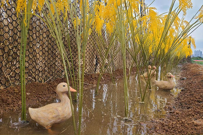 即將完工的鴨鴨地景藝術重磅推出農村風的展覽,如季節限定的田園美景稻草卷,稻草人及古時候竹籮筐、雨天穿的蓑衣,讓民眾拍照時更是有別於一般的「網美照」,另還有利用稻草製作雕塑而成的巨型小水鴨、觀賞養鴨人家等懷舊復古風,結合傳統農業及新世代的文化將農家場景再現,希望能吸引更多的遊客到訪,玩出不一樣的旅程,讓民眾重溫昔時農村生活。