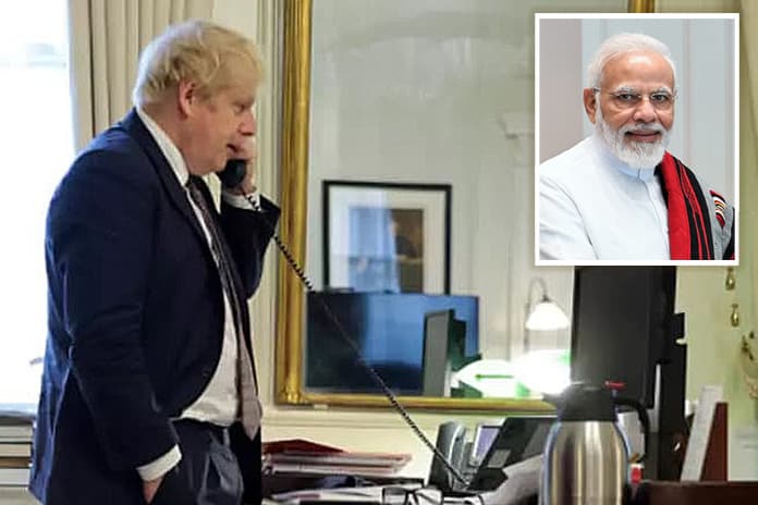印度總理莫迪在推特上寫道,與我的朋友,英國首相鮑里斯·強生進行一次很好的對話。關於未來十年印度和英國關係的宏偉路線圖。我們同意努力實現我們在所有領域,包括貿易與投資、防務與安全、氣候變化和與Covid-19武漢肺炎疫情鬥爭合作的量子性飛躍。約翰遜隨後也通過推特回應說,謝謝你莫迪,很高興與你交談。我非常期待在2021年及以後深化和加強英印關係。