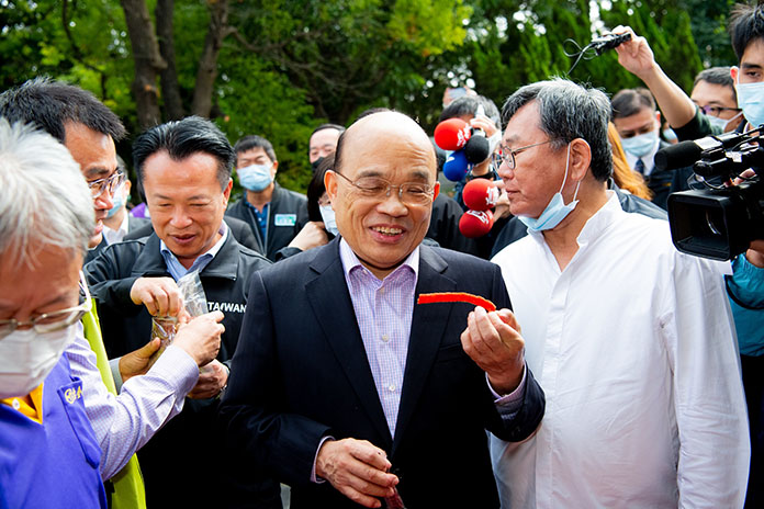 蘇院長進一步強調,他一定會以防止非洲豬瘟的效率、魄力,從海關到每一個地方守得好好的,從訂購豬隻到分類、處理、包裝、冷鏈等一併做好,不只是顧及國際市場,而是連國內的每一間肉品店都顧及到。讓臺灣安全、國人健康、產業發展,政府一定照顧所有產業,讓臺灣在世界有一席之地且越來越美麗。也請大家一起互相鼓勵、加油,讓臺灣更好。