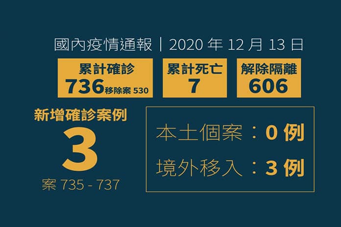 從歐陸英國在12月8日領先全球施打疫苗後,美國境內也將緊急啟動施打COVID-19武漢肺炎疫苗,傳聞將於美國當地時間12月14日啟動。全球COVID-19武漢肺炎統計數據顯示,直到12月13日全球確診數,以迅猛飆升到7,092萬8,775人,死亡為160萬7,345人。中央流行疫情指揮中心於12月13日公布台灣新增3例境外移入COVID-19武漢肺炎確診病例,皆自印尼入境。
