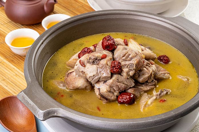 *用包種茶油料理的茶油雞湯。