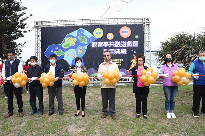 澎湖縣府建設處指出,縣府將觀音亭原遊樂器具設施更新為共融遊戲區,園區內彈性地墊採無縫式安全地墊,彈性好、衝擊吸收性能佳、耐磨耐候性高,讓小朋友玩得安全又開心。