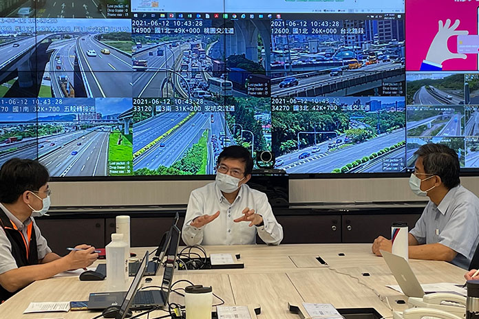 今日(6/12)為端午連續假期第1日,交通部王國材部長於上午10時視察高速公路局,瞭解端午節連假國道交通疏運情形。針對今日累計至10時之交通量較去年端午節連假第1日同時段減少79.8%,部長表示特別感謝國人配合國道防疫措施;另針對目前執行之嚴格匝道儀控管制,部長指示高速公路局實施匝道儀控彈性處理機制:針對民生物流及大客車較多匝道,請交控中心監控人員彈性放寬綠燈秒數,緊急救護車輛可走匝道路肩,請等候車輛多加禮讓,最後呼籲小車不要上國道,將國道讓給上述車輛行駛。