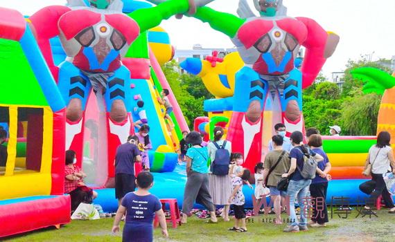 ▲大型氣墊遊戲床是小朋友的最愛,活動當天時有的小與增添潑水的臨場感。(圖/記者周厚賢攝)
