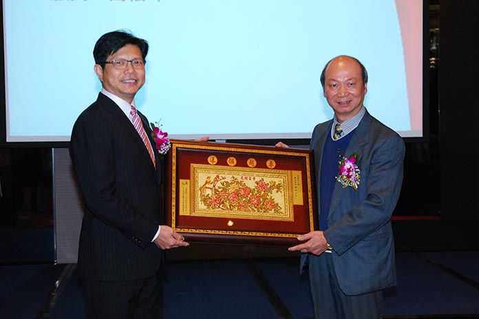邁入第13年的中華國際中小企業資源合作聯合會(簡稱資合會),昨(15)日在臺北國際會議中心3樓舉行 第六、七屆的交接典禮,第七屆理事長賴茂山由前考選部董保城部長手中接過當選證書,並由第6屆理事長張朝坤手中接下了印信,代表了會務傳承的重任。