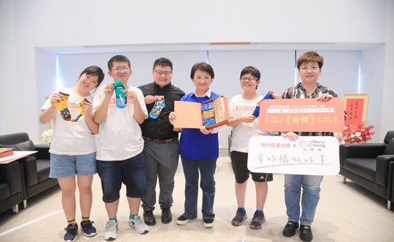 瑪利亞基金會公共事務室主任陳麗娟表示,每雙快樂襪都是由設計師解構後,200細針織造而成,每幅創作都代表瑪利亞青年的視角及不同的創作故事,此外,製作一雙快樂襪等同回收再利用2支寶特瓶,除符合ESG,也獲歐盟環保無毒認證;今年推出「快樂襪派對盒」,可自由選擇喜歡的襪子款式搭配,盒內附有走讀手冊,讓大家認識身心工作者,此項禮盒更榮獲「2023第14屆台中市十大伴手禮」首獎、現場人氣獎、最佳新人獎。