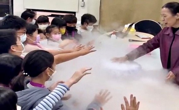 為使烈嶼西口國小體驗頂尖大學的實驗室進而啟發小朋友對科學實驗的興趣,「荔枝社」特別委請清大跨領域科教中心暨物理系戴明鳳教授帶領三位助教,安排西口國小同學及老師一同在清大物理系普物實驗室,體驗超低溫世界的各種奇妙科學現象,藉由零下196度C液態氮與生活中常見物品、食材的混合及其現象觀察,引領同學深入了解背後的科學意涵,透過有趣的實驗及親身品嚐、觸碰,期能使同學透過饒富趣味的課程內容,感受並逐漸擁抱被視為艱深晦澀的科學,甚至對自然科學產生興趣。