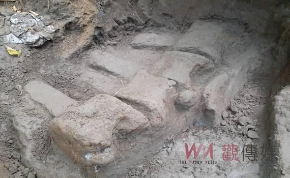 成大考古所周文博為此次鯨魚化石的挖掘團隊成員之一,今年年初他與當地蒐藏家張玉穆尋寶後,聯絡楊子睿一同勘查,團隊5月初在河谷深處意外發現,鑲嵌在地層4根突出地表的肋骨,經初步挖掘,更發現地底有大量骨骼。