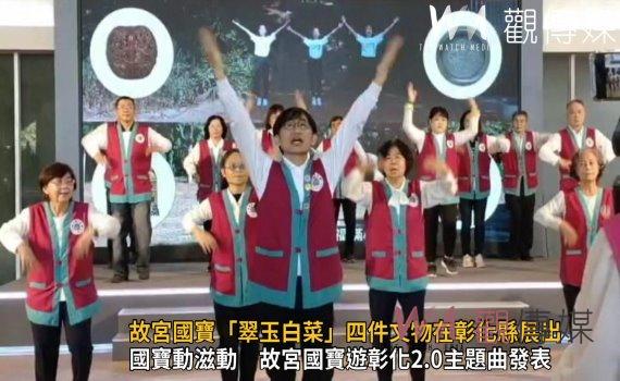 縣府文化局再度爭取到故宮「翠玉白菜」等4件國寶前來展出,並顛覆以往靜態展覽,取得「故宮國寶動動操」音樂授權,進行改編,文化局志工總隊編制輕快舞曲,今(7)日上午在縣府中庭,由縣長王惠美宣布暖身活動-「跟著國寶動滋動」故宮國寶遊彰化動動操影片徵選競賽起跑,主題曲和MV也搶先曝光!