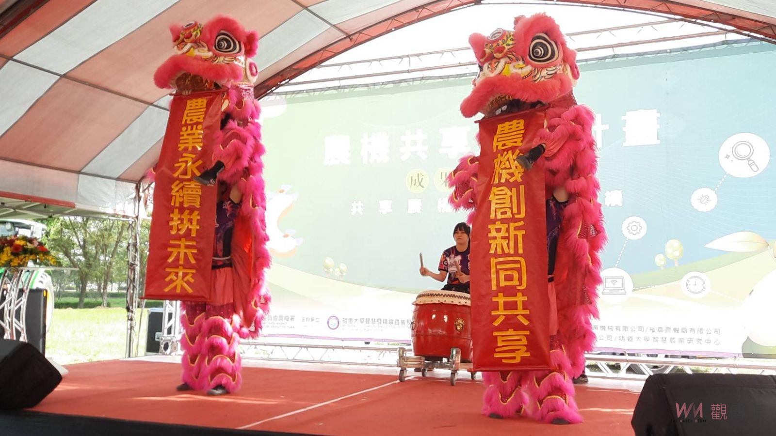 ▲明道大學龍獅戰鼓隊祝賀「農機創新同共享」、「農業永續拼未來」。