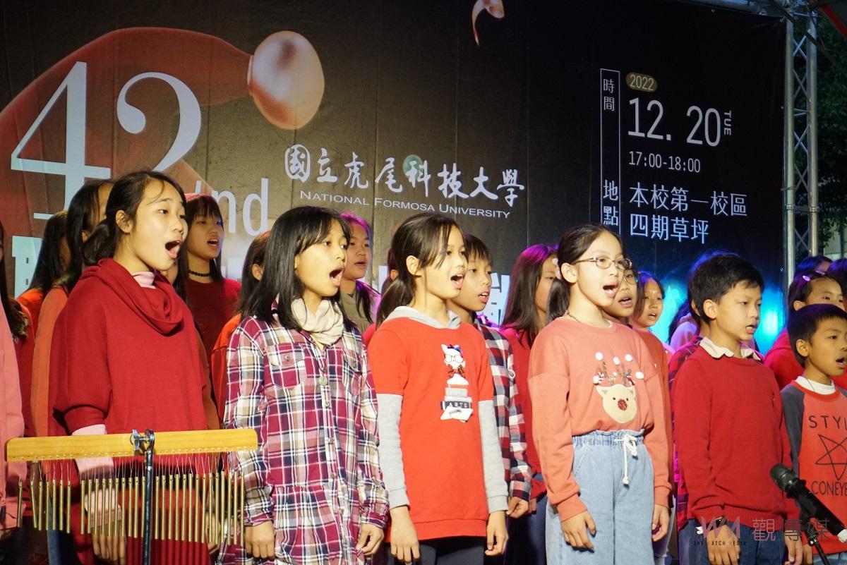 ▲虎科大耶誕點燈邀請雲林縣潮厝華德福小學合唱團美聲演唱報佳音。