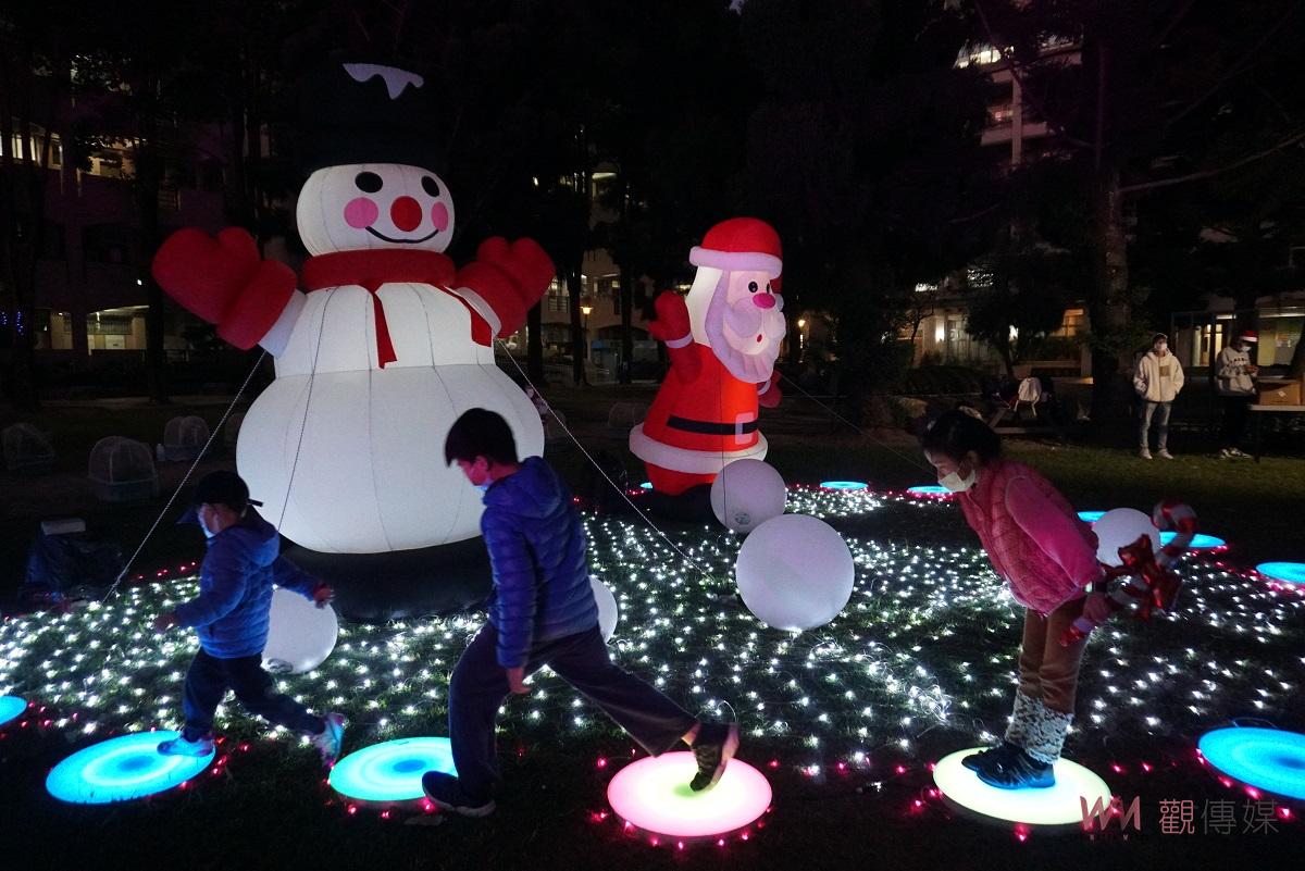 ▲虎科大今年特地設置雪人與耶誕老人的造型氣球,為校園帶來濃厚的佳節氣氛。