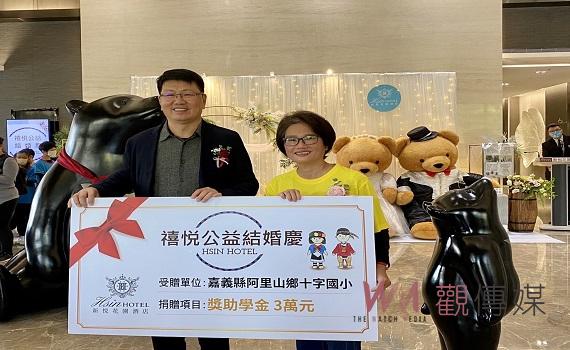 新悅花園酒店董事長蕭友信表示,秉持著「取之社會,用之社會」的精神,不僅全力推廣觀光,亦回饋鄉里,此次公益活動酒店將捐助阿里山十字國小獎學金,讓偏鄉的孩童學習零距離;月桃故事館觀光工廠董事長特助何毓真也響應捐贈宣信國小成立後援會基金,希望在地有才華的孩子能被看見。