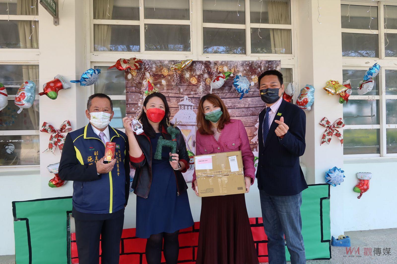 ▲救國團彰化縣團委會化身聖誕老公公,前往埔鹽鄉大園國小分送每一個孩子參與「愛‧分享聚光計畫」的聖誕圓夢禮物。