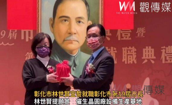 順利連任的市長林世賢於典禮上致詞時,分別回顧細數上一任4年內的政績,以及描繪他為彰化未來發展所精心擘劃的施政藍圖,並許下大願,盼望未來透過和縣府的加強合作,推動將彰化市西區打造為「綠能科技重鎮」,東區擴大都市計劃則催生為「晶圓廠設備生產基地」。