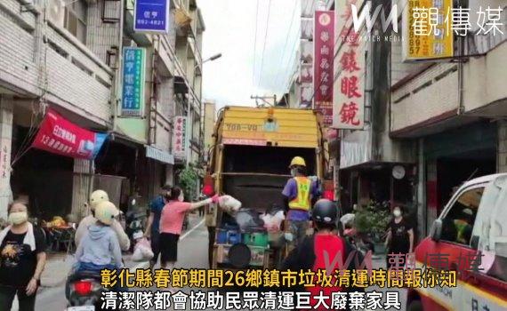 ▲彰化縣環保局公布26鄉鎮市公所的春節連假垃圾收運時間表,1月30日起全縣恢復正常收運。