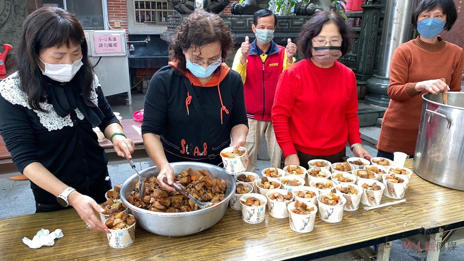 北斗奠安宮主任委員陳在說,還願方式很多,包括添香油錢、送金牌、演酬神戲,信徒布施膳食是第一次,照顧更多信眾和民眾,受惠者把感謝的迴向李榮秀,作法上很有意義。