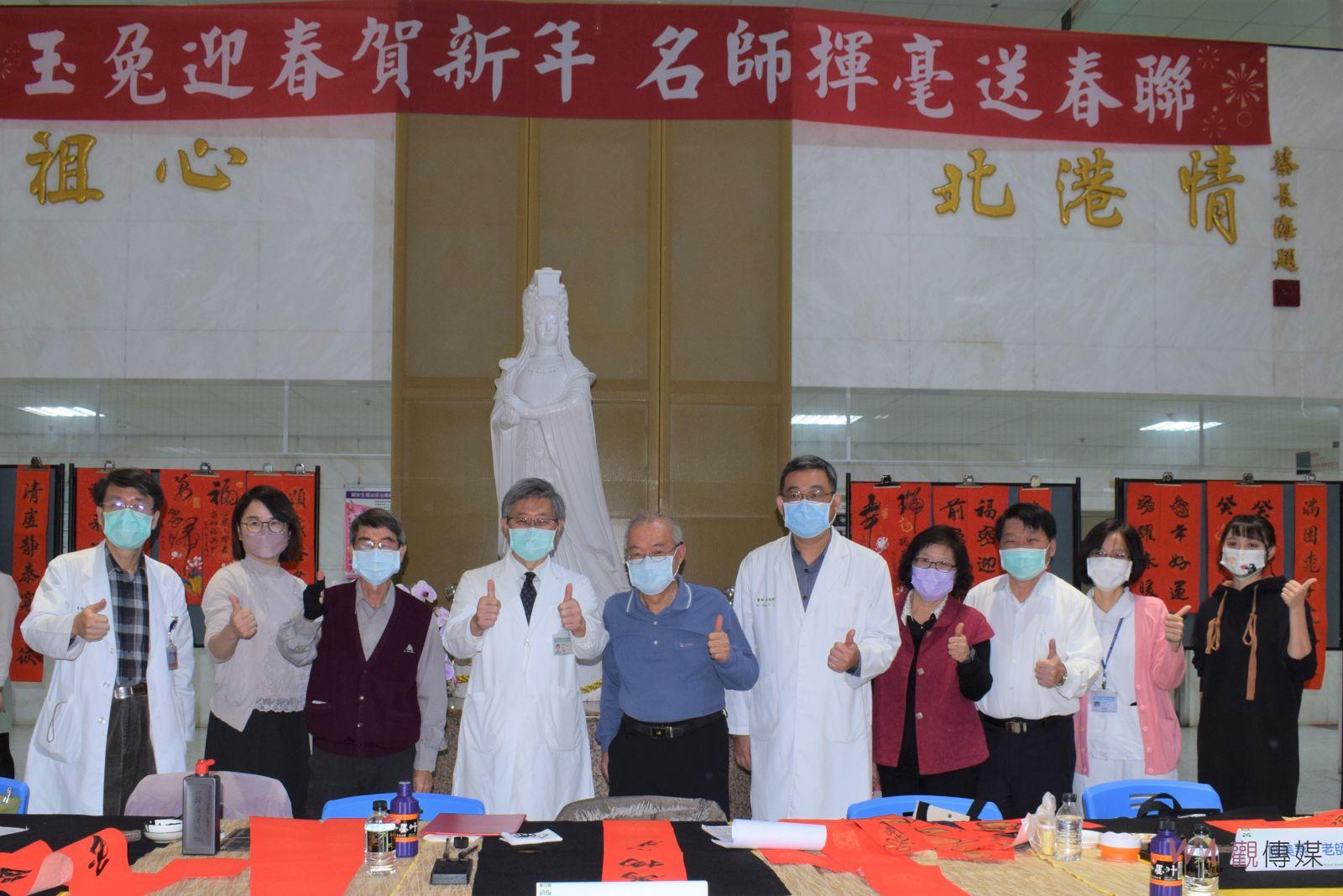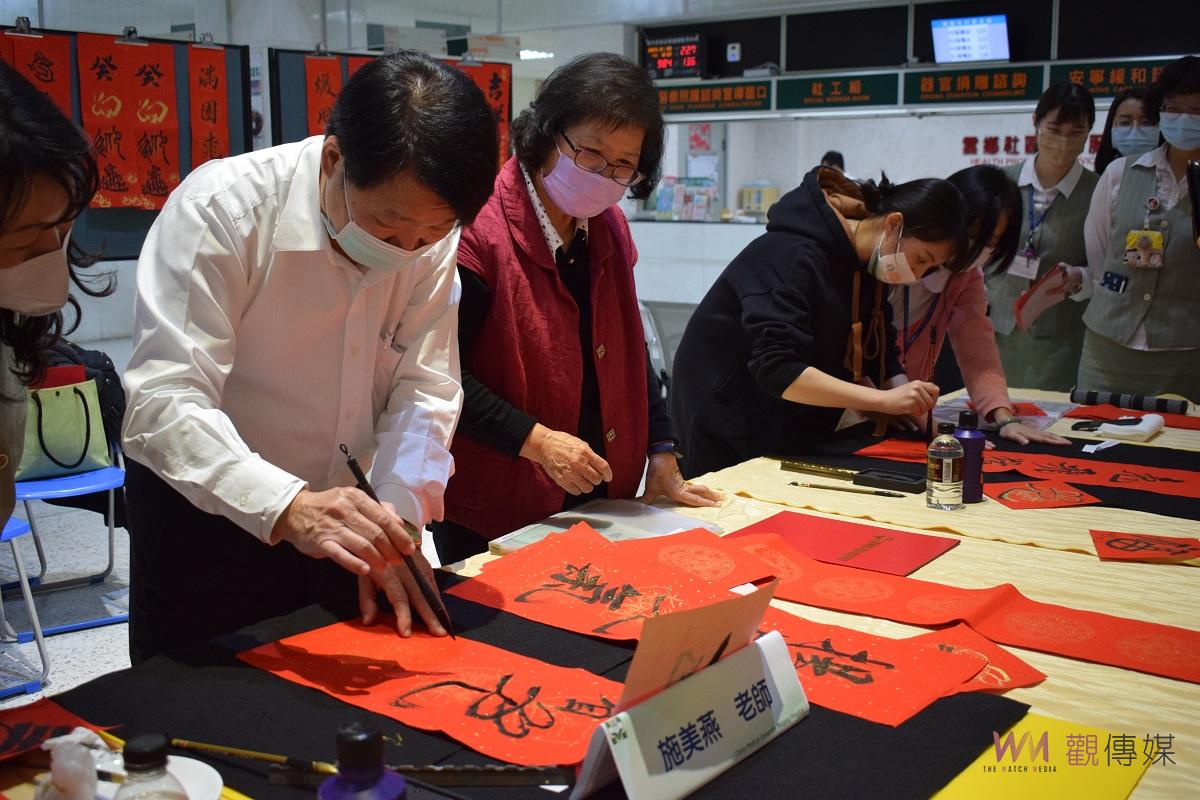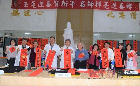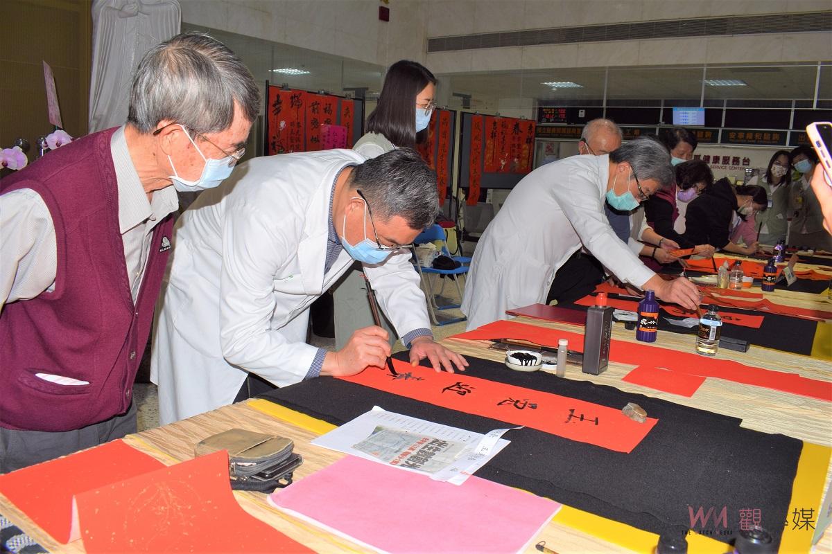 ▲中國醫藥大學北港附設醫院邀請書法名家現場揮毫,喜迎兔年賀新春。