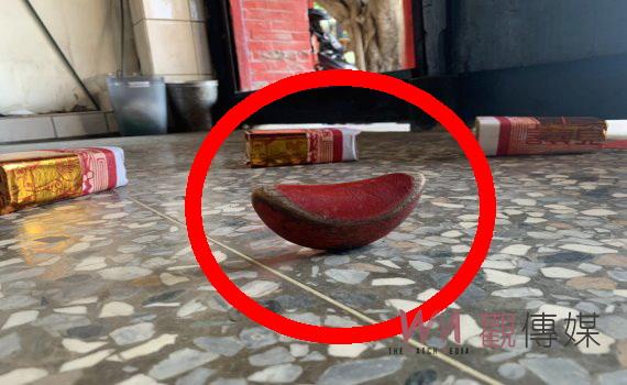 ▲彰化市一早餐店老闆持撿到的金戒指到東門外福安宮請示三山國王,竟擲出「立筊」,廟方認為是神蹟顯現。