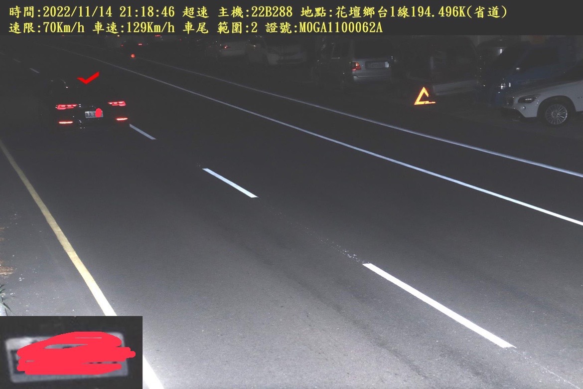 花壇鄉台1線豐田汽車前這支測速桿儘管轉為往北拍照,仍有不少用路人在此栽跟頭。經交通隊統計,去年11月14日至今年1月4日共開出779張超速罰單,平均1天近15張,共為國庫進帳124萬餘元,其中1張時速高達129公里,足足超速59公里之多。