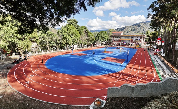 沈校長說,6年前剛派任到學校時,老舊校舍已逾50年,建物老化、外牆龜裂、壁癌斑駁嚴重,在縣府及民意代表支持下得以重建,新建校舍分別為教學大樓、操場跑道、文化學習場域,規劃時考慮現代建築外及文化元素的意涵,也興建賽德克族、布農族、泰雅族的傳統屋,營造文化學習場域,讓孩子學習在地部落的知識與文化,感謝縣府的支持。