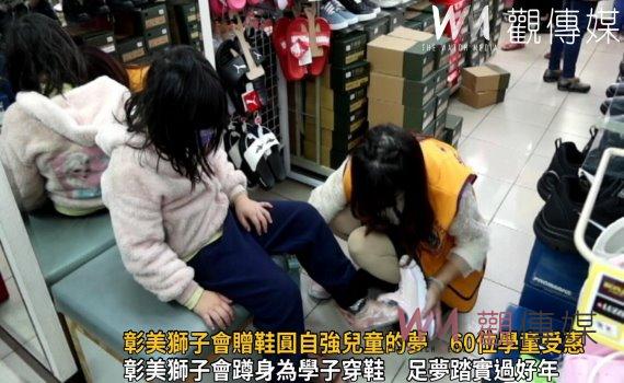 (觀傳媒彰化新聞)【記者陳雅芳/彰化報導】為困苦家庭的孩子圓一個穿新鞋的夢,彰美獅子會發起「童心鞋力」活動,連續9年於過年前辦理自強兒童贈鞋活動,足跡遍佈彰化縣,今年選定和美鎮、伸港鄉國小學童,60位學童受惠,今(13)日也以實際行動關懷地區的弱勢家庭自強學生,小朋友穿上自己喜歡的鞋子,都不僅開心的用力跑跳起來。