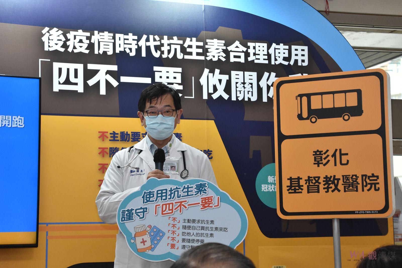 (觀傳媒彰化新聞)【記者陳雅芳/彰化報導】世界衛生組織將每年11月18至24日一周定為「世界抗生素周」,彰基醫學中心響應,呼籲各國共同預防抗生素抗藥性,推出「抗生素合理使用巴士巡迴展」衛教宣導活動,彰基發言人暨副院長周志中提醒民眾,如果用藥方面有疑慮或問題,一定要諮詢醫師或藥師。