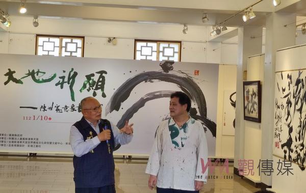 ▲意象書法家陳世憲作品風格獨特與新港交情深厚,奉天宮董事長何達煌邀請開展一起為台灣這塊土地祈願。