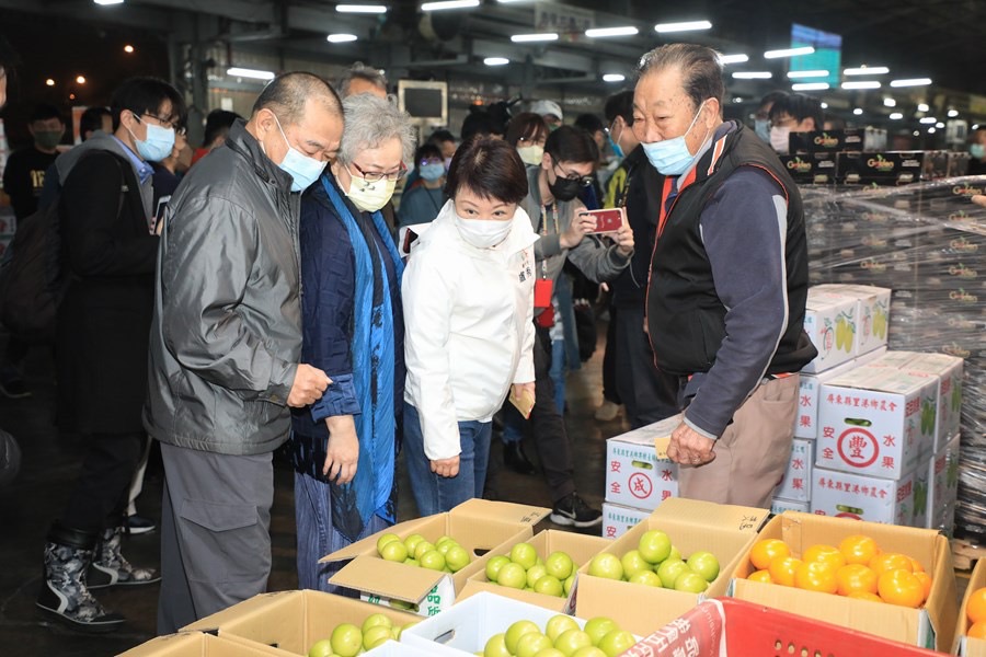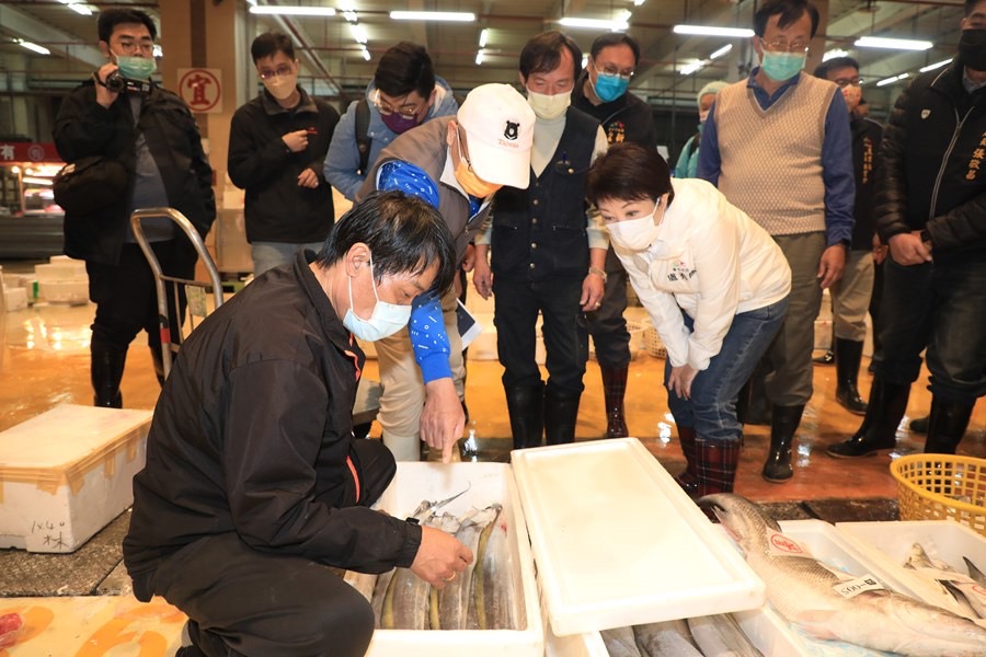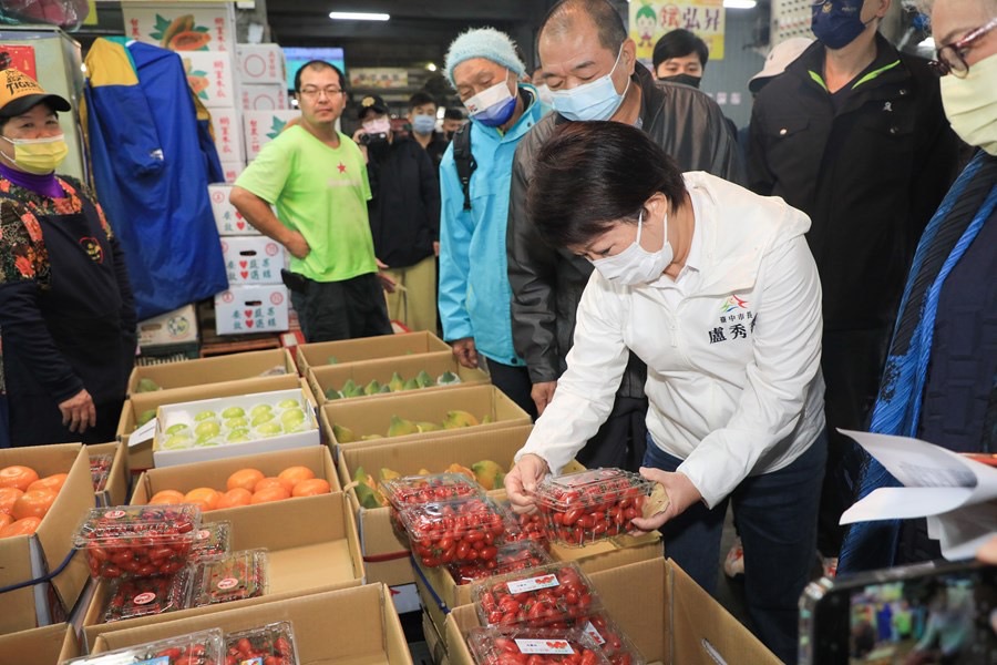 ▲農曆年節將近,市長盧秀燕今(10)日凌晨前往台中魚市場與果菜批發市場視察,實地了解魚貨、蔬果供銷情形。