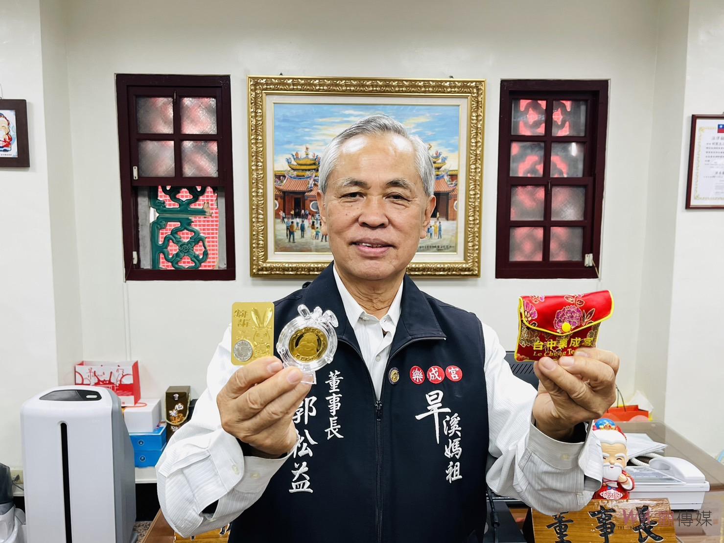 ▲郭松益董事長特別介紹,樂成宮112年新春期間活動:農曆正月初一至初五-廟方舉辦倰轎腳、送錢母、送元寶的活動,祝福大家鴻兔大展、新年快樂!