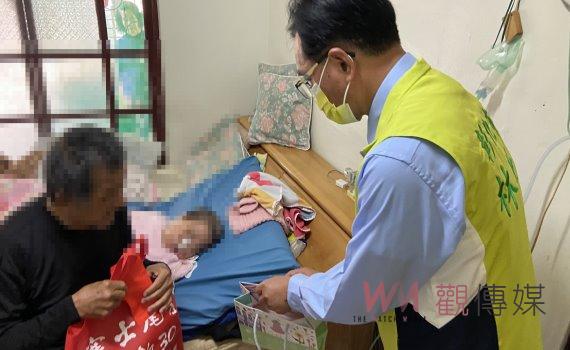 彰化市長林世賢化身一日天使偕同創世基金會人員送上年禮及祝福紅包給植物人。