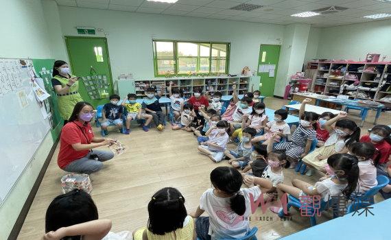 ▲大葉大學護理系學生到秀水鄉的幼兒園帶領小朋友讀繪本認識疫情。
