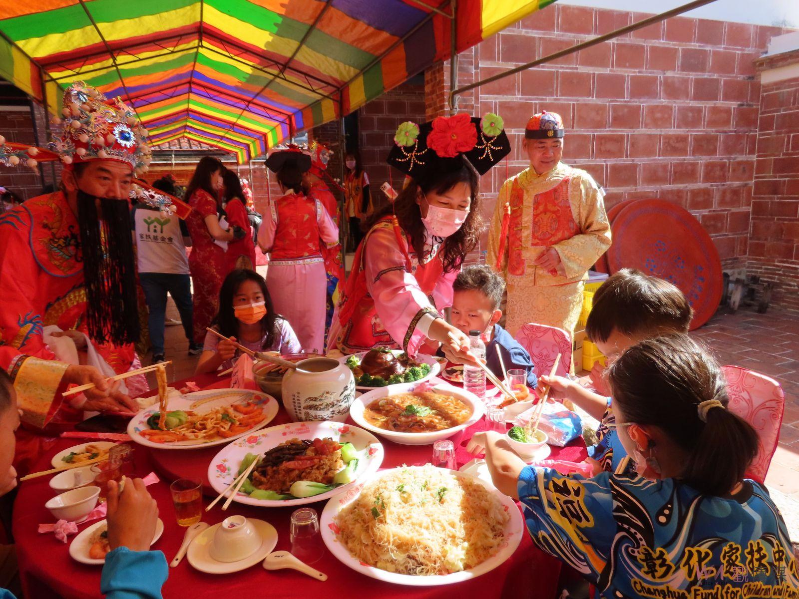 (觀傳媒彰化新聞)【記者陳雅芳/彰化報導】為讓扶助家庭家家戶戶於除夕團圓都可以有年菜,彰化家扶中心今(15)日在秀水鄉益源古厝舉行「幸福年菜圍爐新年暨童年往事」發送年菜圓夢活動,邀請福興、鹿港、秀水鄉共200戶家庭到場參與,共同在歷史悠久的古厝大院中吃辦桌感受這暖心又熱鬧的圍爐氣氛。