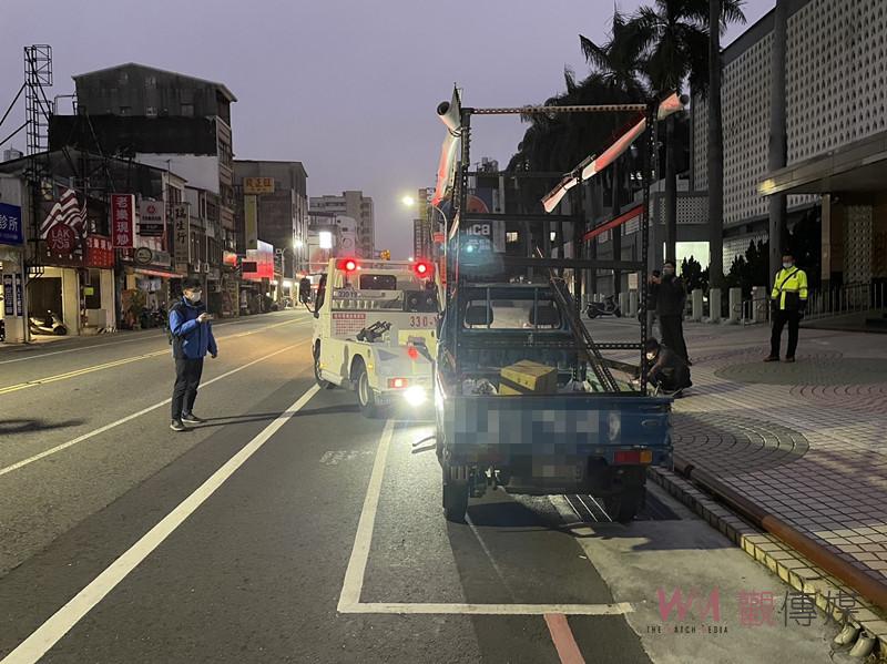 ▲18日清晨6時,台南市政府執行拖吊作業。