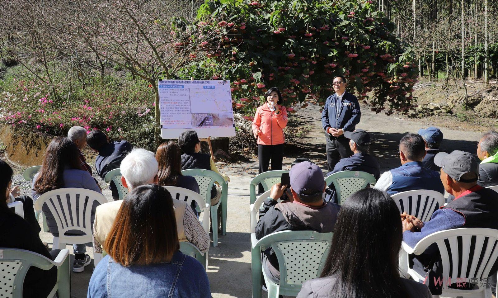 張縣長說明工程進度並邀請民眾春節期間到雲林山區賞櫻花、喝咖啡。