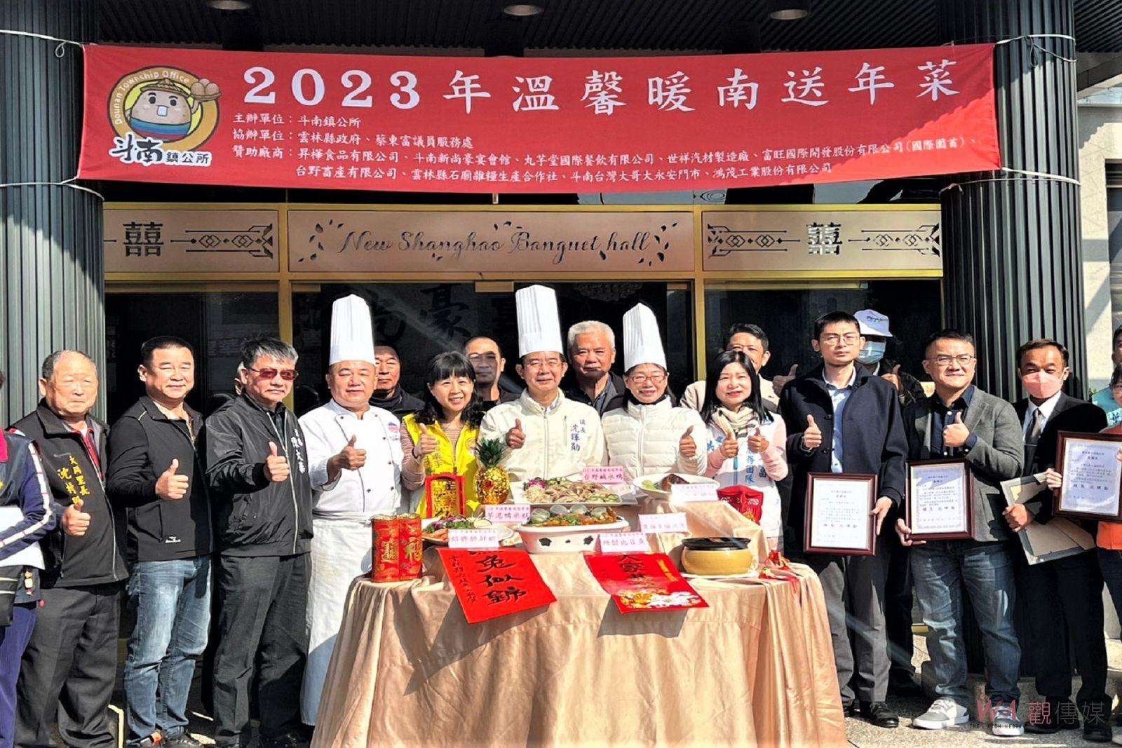 5年來,雲林縣議員蔡東富結合斗南鎮鎮長沈暉勛和地方愛心人士,關懷弱勢的「溫馨暖南送年菜」愛心持續施暖,且今年的溫馨年菜為五菜一湯,包括昇樺食品公司捐贈的380份「幸福雞湯」,台野畜產公司的380份「鹹水鴨」,以及另外紹興醉鮮蝦、芋泥鴨米糕、糖醋比目魚、福氣元蹄膀等美味菜肴,也仍由斗南新尚豪宴會館大廚林寶中協助料理,並在今(18)日上午10時始,將溫馨暖南愛心年菜一一送到弱勢家庭。