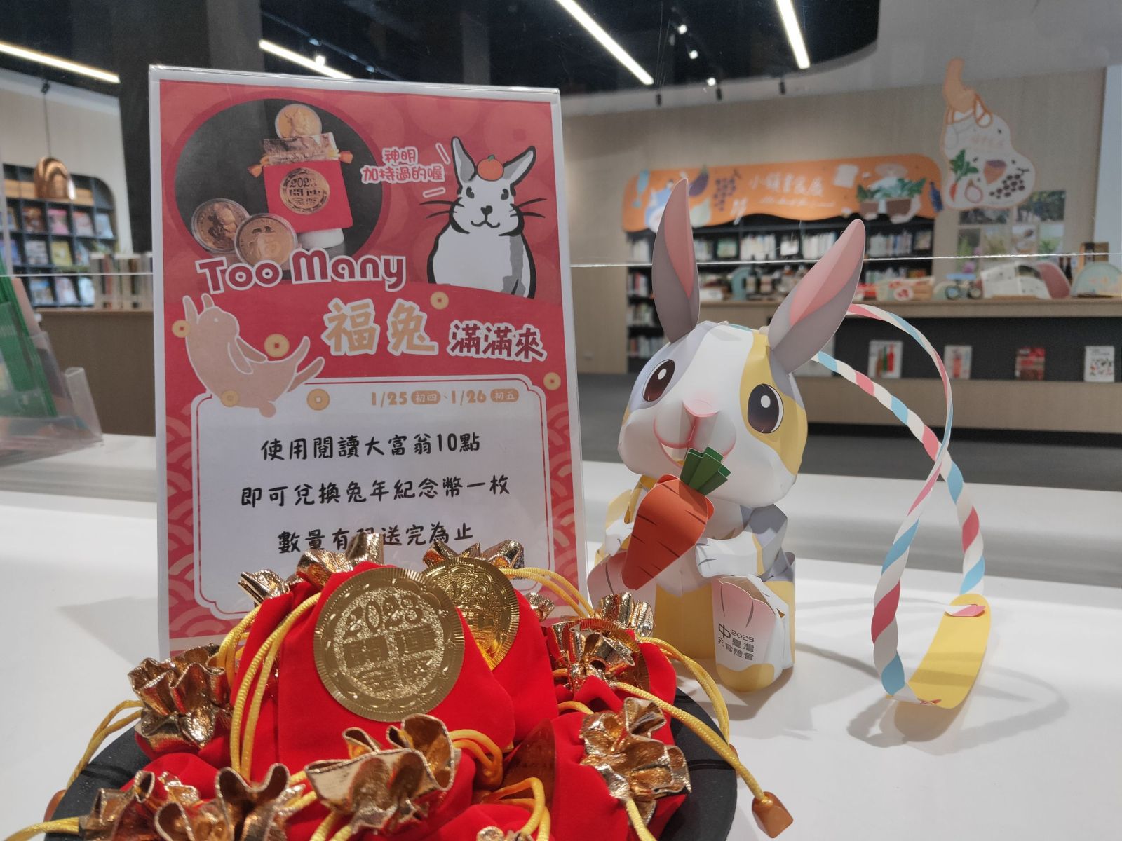 ▲外埔圖書館借閱10本書可兌換兔年紀念幣1枚,讓你福兔滿滿來。