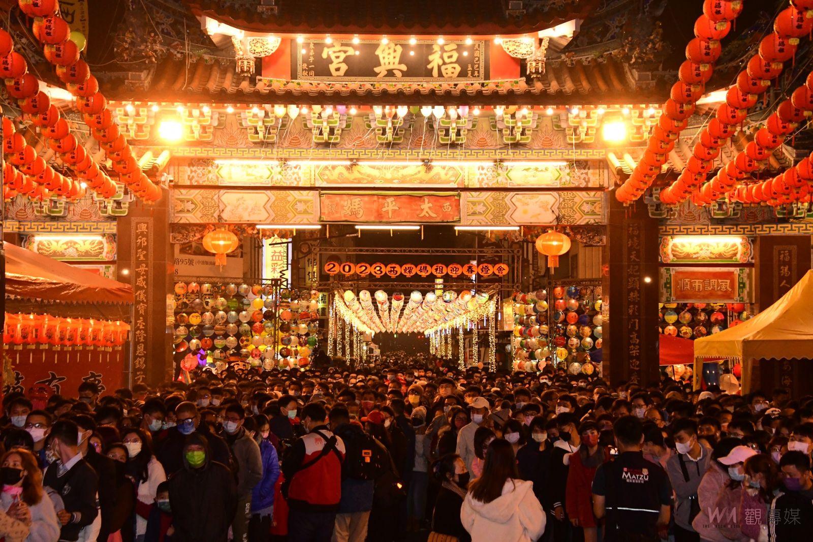雲林西螺福興宮太平媽祖廟,往年除夕夜均辦理搶頭香活動,每年均吸引上萬信眾爭搶頭香,祈求媽祖賜福而心想事成,不過近年因疫情影響停辦2次,直到今年才又恢復辦理,在21日的除夕夜舉辦「2023逗陣與太平媽守歲團圓迎新春」活動,廟方依例在除夕夜10點30分關閉廟門,代表「虎」年已結束,廟埕前聚集許多民眾守歲等待「兔」年到來,廟方準備上千顆「祈福氣球」,讓民眾寫下兔年新希望後,一起施放升空,將來年新希望直達天聽。