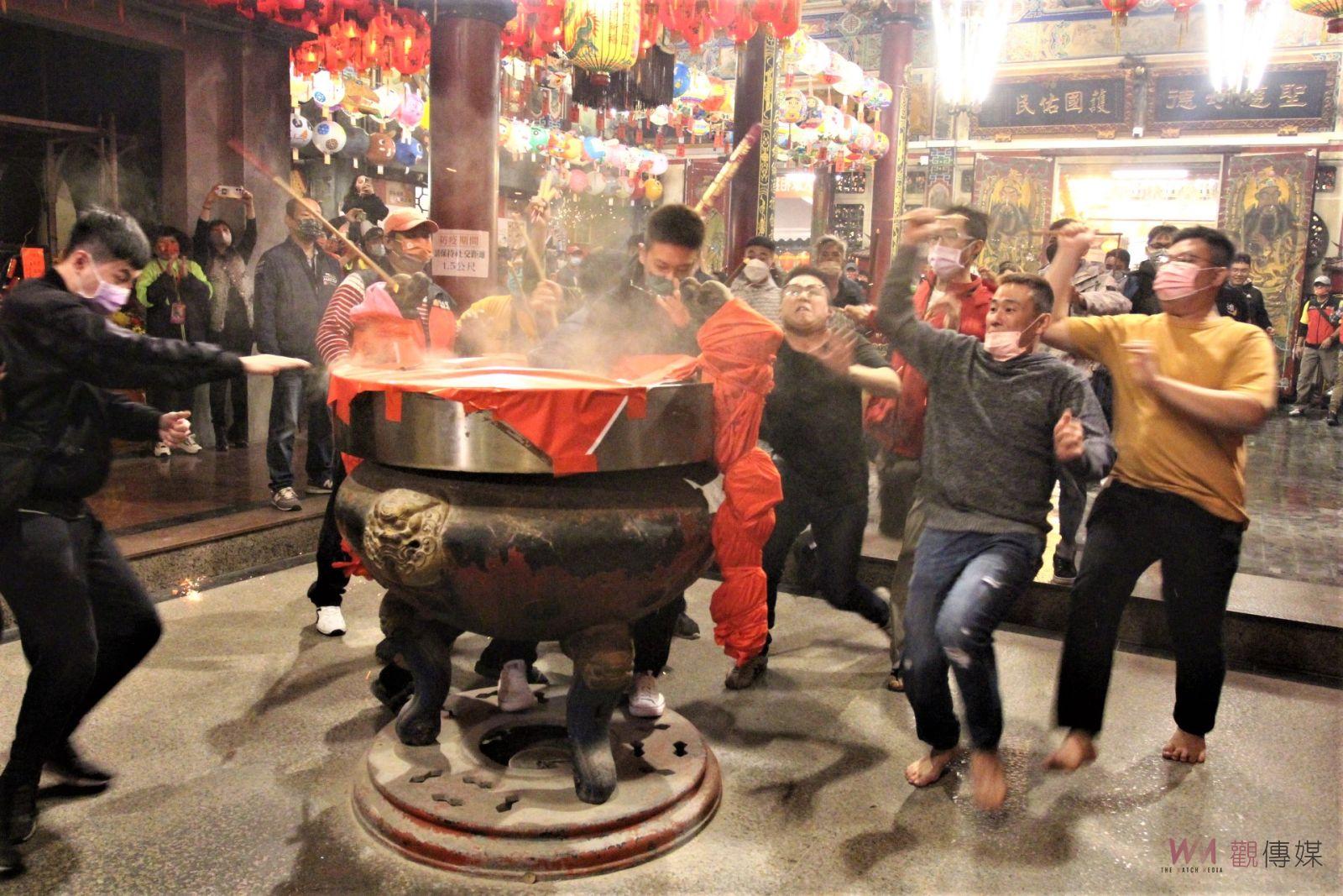 ▲今(22)日大年初一零時準時開廟門,由來自心北市汐止區的30歲陳信宏拔得頭籌,名登頭香狀元榜。