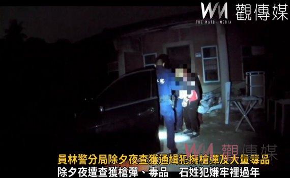 警方鎖定石姓犯嫌除夕躲藏在員林市山腳路曹姓友人住處,員警在除夕夜覓得查緝良機,一舉發動拘捕和搜索,將石姓犯嫌繩之以法,並扣押毒品海洛因、安非他命等毒品120公克、火藥動力1把手槍、1個彈匣、子彈47等違禁物。