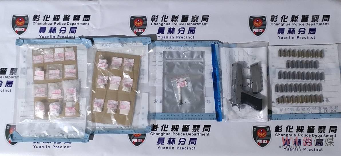 ▲新春一砲三響!彰化縣員林警分局前往拘捕時嫌犯與員警發生扭打,警方在其身上查獲及槍械等違禁物。