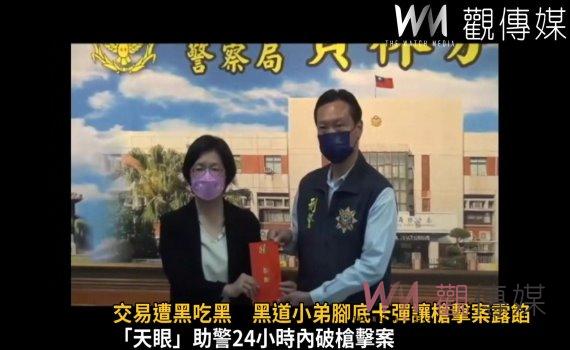 (觀傳媒彰化新聞)【記者陳雅芳/彰化報導】天眼追蹤槍手落網!彰化縣大村鄉一處民宅在暗夜發生槍擊案,陳姓男子腿部遭槍傷;彰化縣警局專案小組啟動「天眼」蒐證系統,在24小時內將謝姓主嫌逮捕到案,並起出3把槍械;縣長王惠美得知後,今(2)日前往員林分局表揚有功人員,肯定員警保衛鄉親的生命及財產安全。