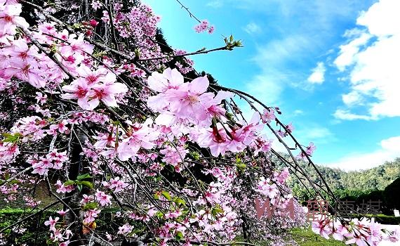 ▲台灣最大賞櫻盛會-九族櫻花祭2月6日正式登場,目前盛開的垂櫻.