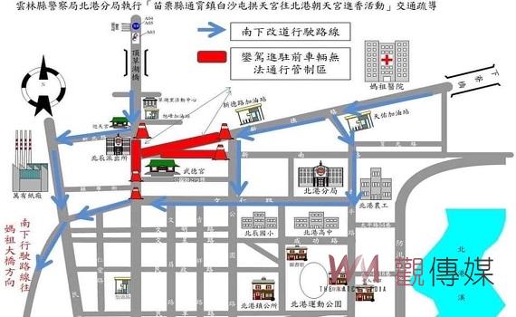 此外,鑾轎駐駕北辰派出所前管制區,包括臺19線溝皂牌樓至北辰派出所前,南下外側車道畫定爲行人徒步區;臺19線華勝路、新北路口以南至華勝路、文仁路口封閉雙向車道;新德路公園路口禁止轉往華勝路方向、新南路、公園路口禁止轉往華勝路方向,北港警察分局也呼籲非參香民眾在17日當天6-13時盡量避開台19線。